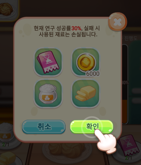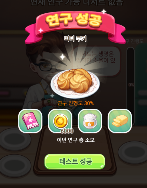 새로운 디저트는 잠금해제 후 바로 만들 수 있는것이 아니라, 재료 상점 옆 디저트 연구소에서 레시피를 개발해야합니다.