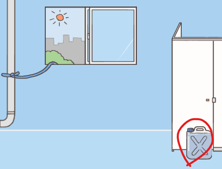 오른쪽 맵으로 이동하여 화장실 칸을 열고 호스와 물통을 얻어주세요. 그 다음 물통을 수돗가에 슬라이드하여 물을 채워줍니다.