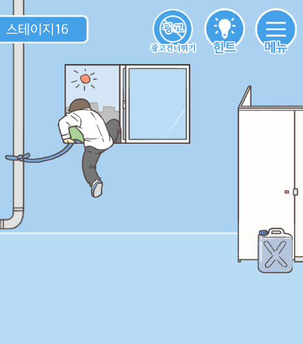 다시 왼편 맵으로 이동한 다음 창문을 열고 타고 넘어갈 수 있도록 줄을 달아주세요. 이 상태에서 바로 줄을 타고 내려가면 화장실 안에 있던 선생님에게 딱 걸려서 미션에 실패합니다. 물을 채운 물통으로 선생님이 화장실에서 나오지 않게 막아준 뒤 창문에 매달은 줄을 터치하면 탈출 성공 입니다.