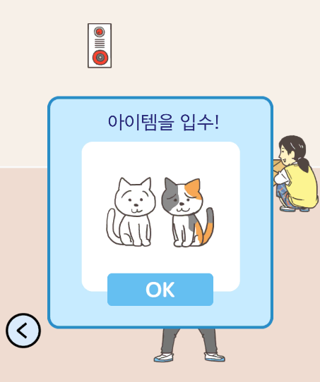 먼저 오른쪽 맵에서 고양이를 얻어주세요. 그런 다음 왼쪽공간에 있는 빈 상자에 고양이를 넣은 뒤 다시 오른쪽 공간에 와서 소화전을 눌러주면..!!