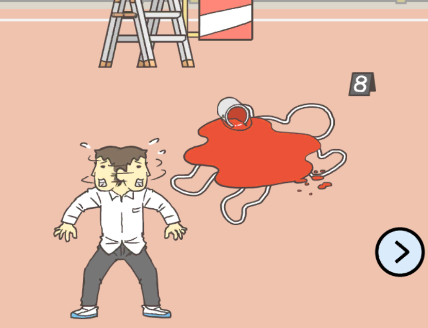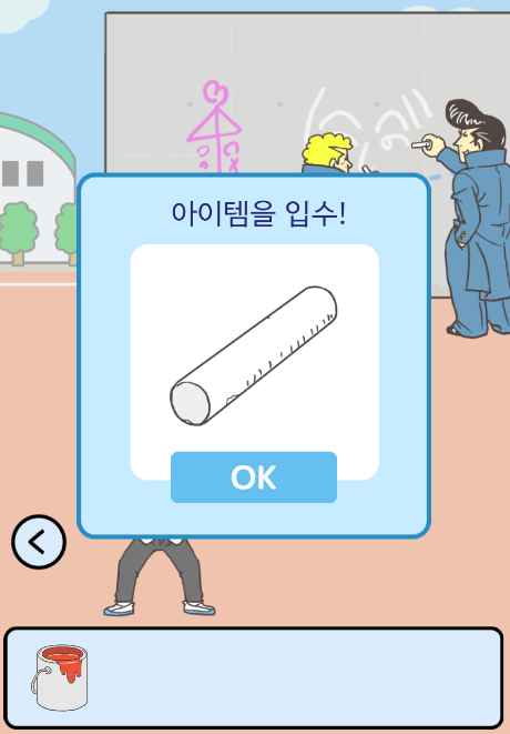 오른편 맵으로 넘어와서 바닥에 떨어진 하얀 분필을 주워주세요. 그런 다음 다시 왼쪽 맵으로 넘어와서 바닥에 빨간 페인트 통을 쏟아준 후 분필도 드래그해주세요.