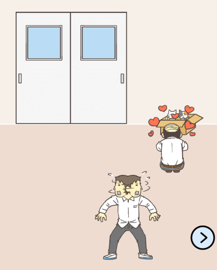 깜짝 놀라서 달려온 선생님이 귀여운 고양이에 푹 빠져있을 때 문을 터치해서 도주해줍니다. 고양이는 못참죠. 게다가 2배면 20배로 더 못참죠!
