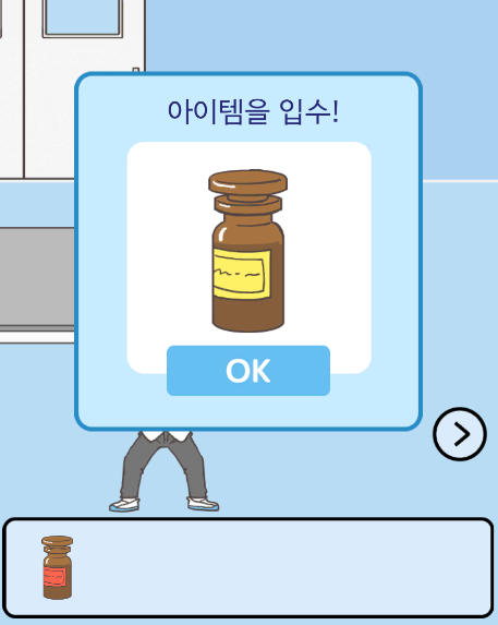 이번 미션 장소는 다시 과학실입니다. 공간은 이렇게 두 부분으로 이주어져 있네요. 오른편 두개의 용액 병과 오른편 비어있는 병이 포인트입니다.