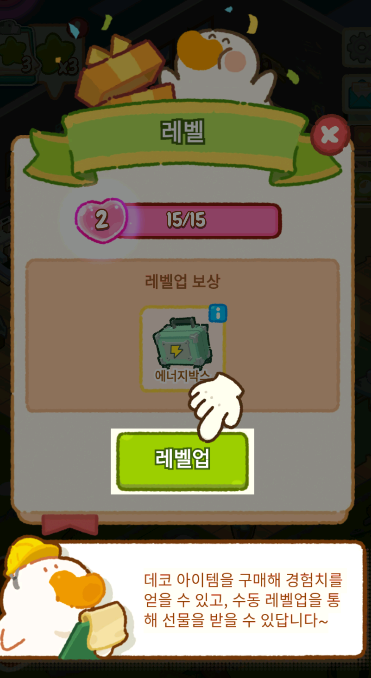 이런식으로 아이템 병합을 통해 의뢰 받은 아이템을 완성하여 퀘스트를 수행하고 헬스장 아이템을 늘리고 업그레이드해나가면서 귀염뽀짝 거위 손님들을 모으는 재미가 있는 캐주얼 게임입니다.