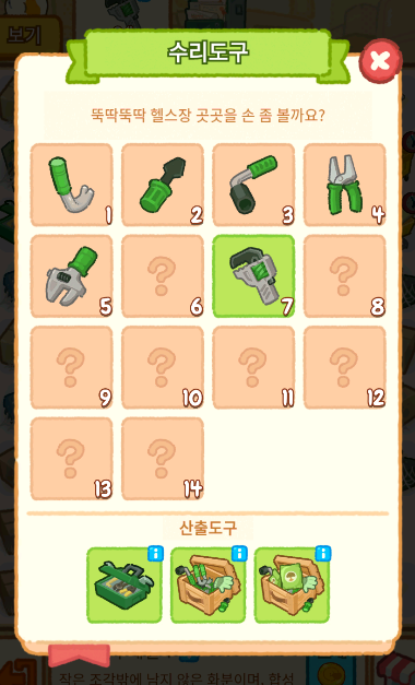 만약 병합할 아이템이 없는경우, 공구함을 터치하면 랜덤으로 아이템이 나오고 계속해서 병합을 진행할 수 있습니다.