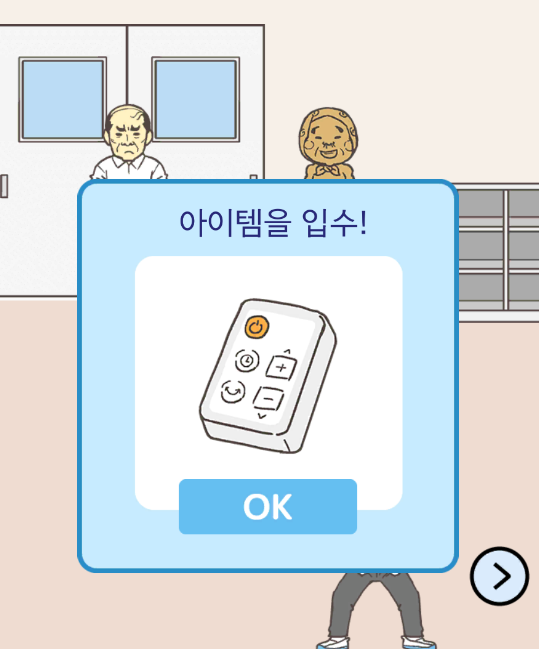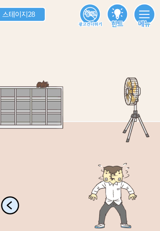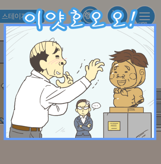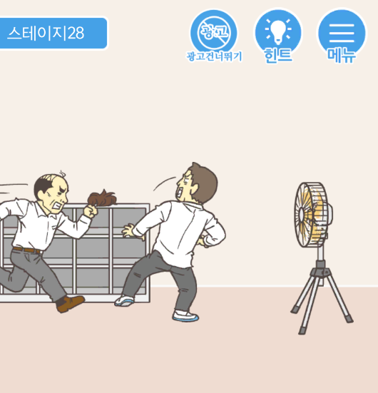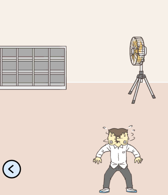 왼쪽 맵에서 선풍기 리모컨을 주워주세요. 오른쪽으로 가서 리모콘을 선풍기에 가져다대면 선풍기가 작동하면서 가발을 왼쪽 맵으로 날려줍니다. 그럼 날아간 가발이 동상에 안착! 담임선생님이 정신팔린 그 순간 문을 터치해서 탈출해줍니다.