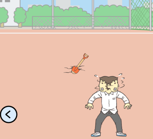 왼편에서 주운 삽을 가지고 오른쪽으로 와서 땅을 파준 뒤 라바콘을 구덩이 위로 끌어다 놓아주면 눈속임으로 이번에도 땡땡이 성공! 담임선생님 맨날 땡땡이치는 학생 잡으러 다니다가 머리 다 빠지시겠어요...