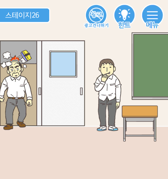 이번 스테이지 25에서 29단계까지는 이전보다 더 기발한 방법으로 땡땡이 미션을 수행해서 더욱 재밌게 플레이했습니다. 특히 26스테이지에서 자로 우산터는것은 정말 신박한 방법이었던 것 같아요. 요즘은 물칠판이라 저 먼지날리는 분필은 아는사람만 아시겠죠? 잘못털면 먼지 장난 아니라서 왜인지 공감이 갔던 스테이지였습니다. 25스테이지는 오랜만에 원패스했는데 이상한 궁금증으로 다시 돌아가서 실패 엔딩을 꼭 보고야마는 이상한 집착증이 발동했지요. 다채롭게 플레이할 수 있어서 재밌게 즐기고 있는 게임 학교 땡땡이 리뷰 마치겠습니다. 다음 단계 공략에서 만나요:)