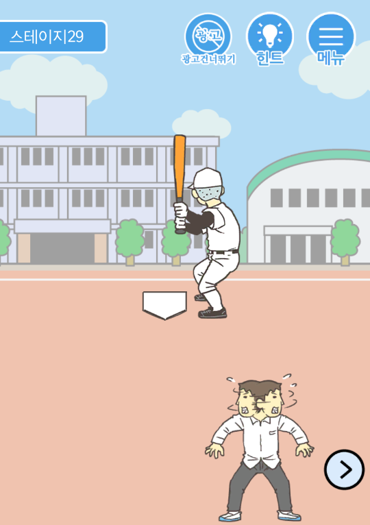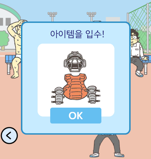 보호구를 잽싸게 주워준 뒤 왼쪽 맵으로 다시 돌아가서 보호구를 끌어다가 포수 자리에 두면 야구부인척 위장에 성공해서 무사히 미션에 성공합니다.