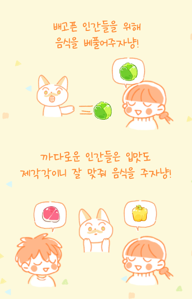 웹툰 기반의 게임이다보니 중간중간 음식에 담긴 사연과 함께 스토리가 이어집니다.