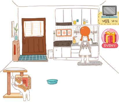 한 커플이 귀여운 고양이와 함께 살고있는 컨셉입니다. 그림체가 몽글몽글 편안하고 귀여워서 좋아요.