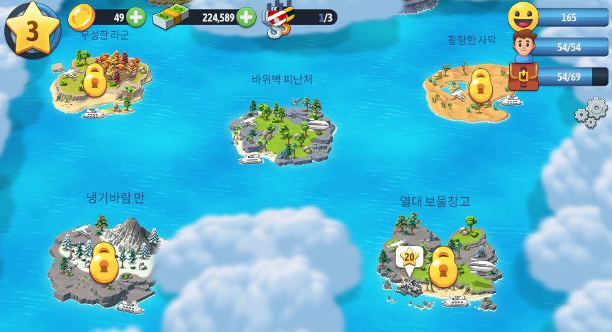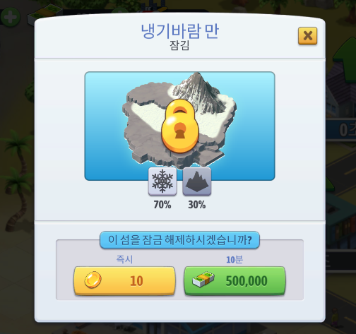 이후 섬의 황무지들을 일정 비용을 지불하여 확장할 수 있습니다. 기존 섬에서 비용을 지불하고 다른 섬으로 이동하여 새롭게 꾸밀 수 있습니다. 섬마다 분위기가 다르고 특색에 따라 지을 수 있는 건물이 구분되어있습니다.