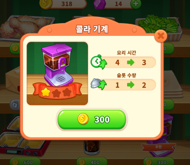 업그레이드를 통해 튀김기, 요리 접시, 콜라 슬롯이 각각 1칸씩 늘어나게 되니 훨씬 더 효율적인 운영이 가능합니다.