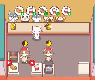 이 게임의 가장 큰 장점 중 하나는 먼저 방치형 인 척 하면서 사실상 상당한 노동력을 요하는 게임과 비교했을 때 진정한 방치용 게임이 아닐까 싶을 만큼 크게 신경써야 할 부분 없이 알아서 돈이 벌리면 그 돈으로 설비 업그레이드와 가게 관리만 신경써주면 되는 게임입니다. 가끔 손님이 두고간 팁 줍는 정도만 추가적으로 신경써주면 되는 정도입니다.